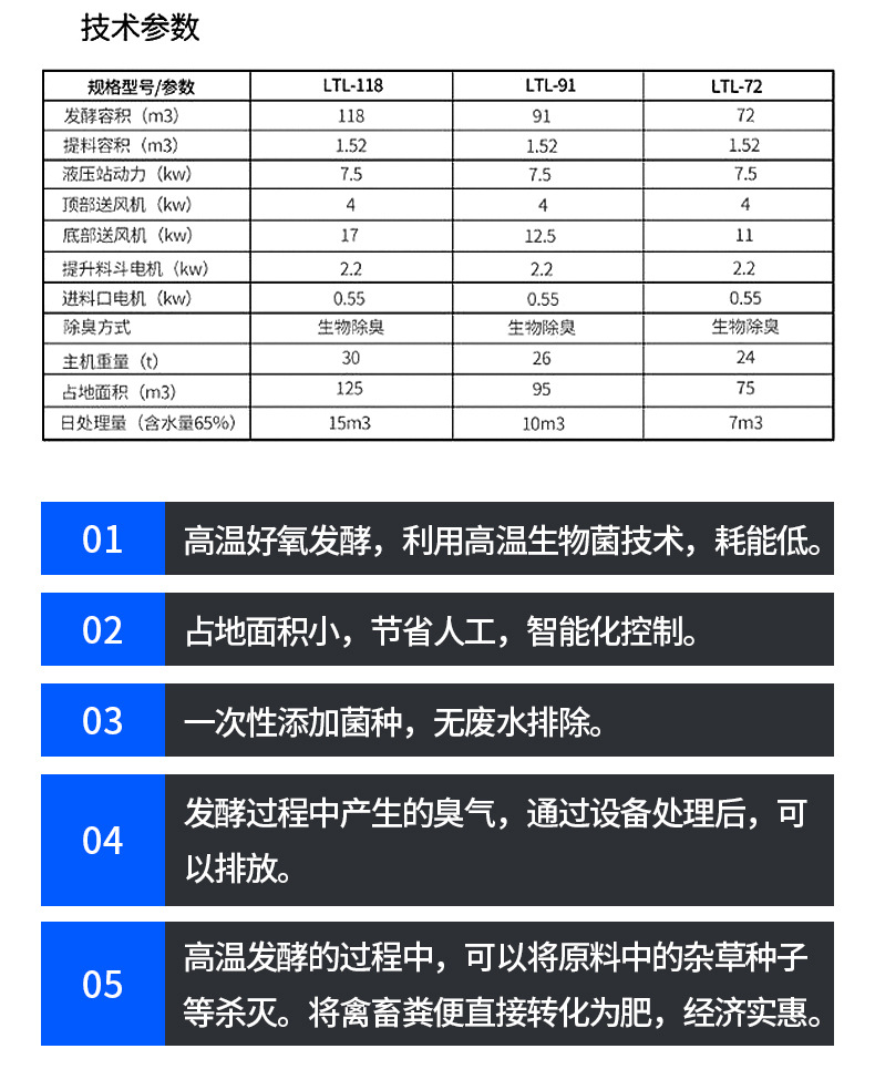 智能好(hǎo)氧發酵環保設備是專業處理畜禽糞便、廚餘垃圾、生活汙泥(ní)等有機廢棄物的成套設備。通過高(gāo)溫好氧發酵,利用微生物的活性,對廢棄物中的有機質進行生物分解、腐熟,使有機廢(fèi)棄物轉化成(chéng)有機肥料,用於土壤改良、園林綠化,實(shí)現(xiàn)有機廢棄物(wù)資源利用。 特點: 1、高溫好氧發酵,利用高溫生物菌技術,耗能低,運(yùn)行成本低。 2、占地麵積小(xiǎo),節省人工,智能化控製,操作便捷。 3、發酵在密閉的罐體內(nèi),罐體有保溫層,極(jí)大的減少熱(rè)量(liàng)損失,提(tí)高發酵效(xiào)率,主體采用不鏽鋼材質,減少(shǎo)腐蝕,使用壽命長(zhǎng)。 4、一(yī)次性添加菌種,無廢水排出。 5、發酵過程中產生的臭氣,通過設備處理後,可(kě)以(yǐ)達標排放,不產生二(èr)次汙染。 6、高溫發酵的過程中,可以將(jiāng)原料中的(de)病原菌、雜草種子等殺滅。將畜禽糞便直(zhí)接轉化為有機肥,經濟實惠。