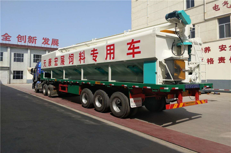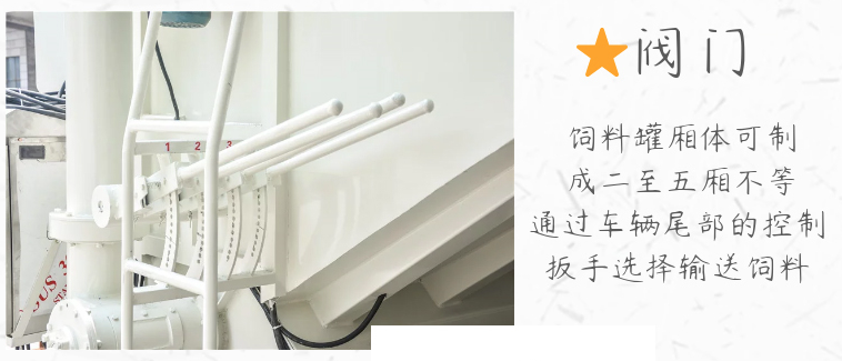 用於大型養殖場,罐體內可分為二至四個料倉,可根據(jù)用戶需要運輸不同類的(de)飼料,同時直接把飼料輸入料塔內(nèi),省時省力,方便快捷。